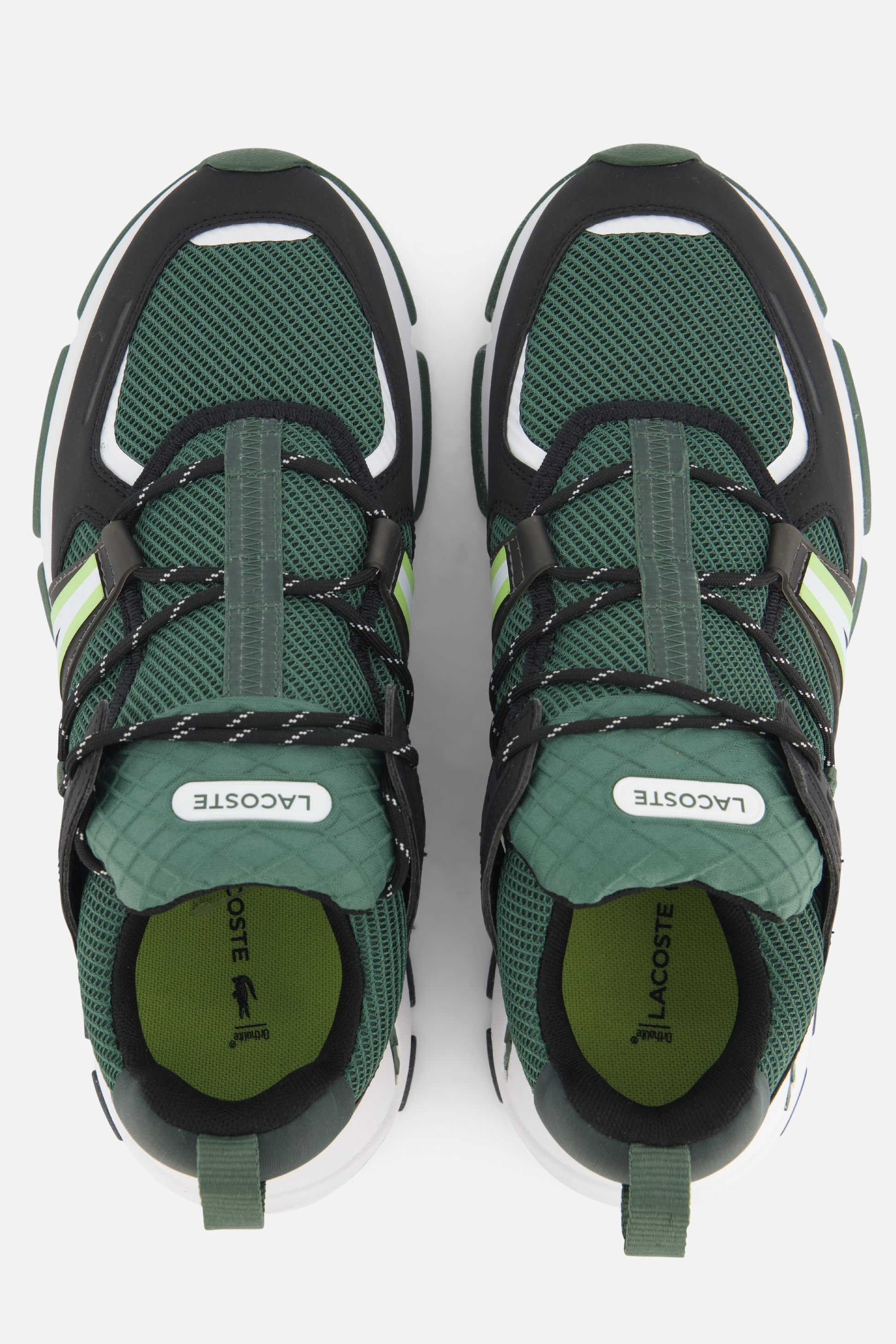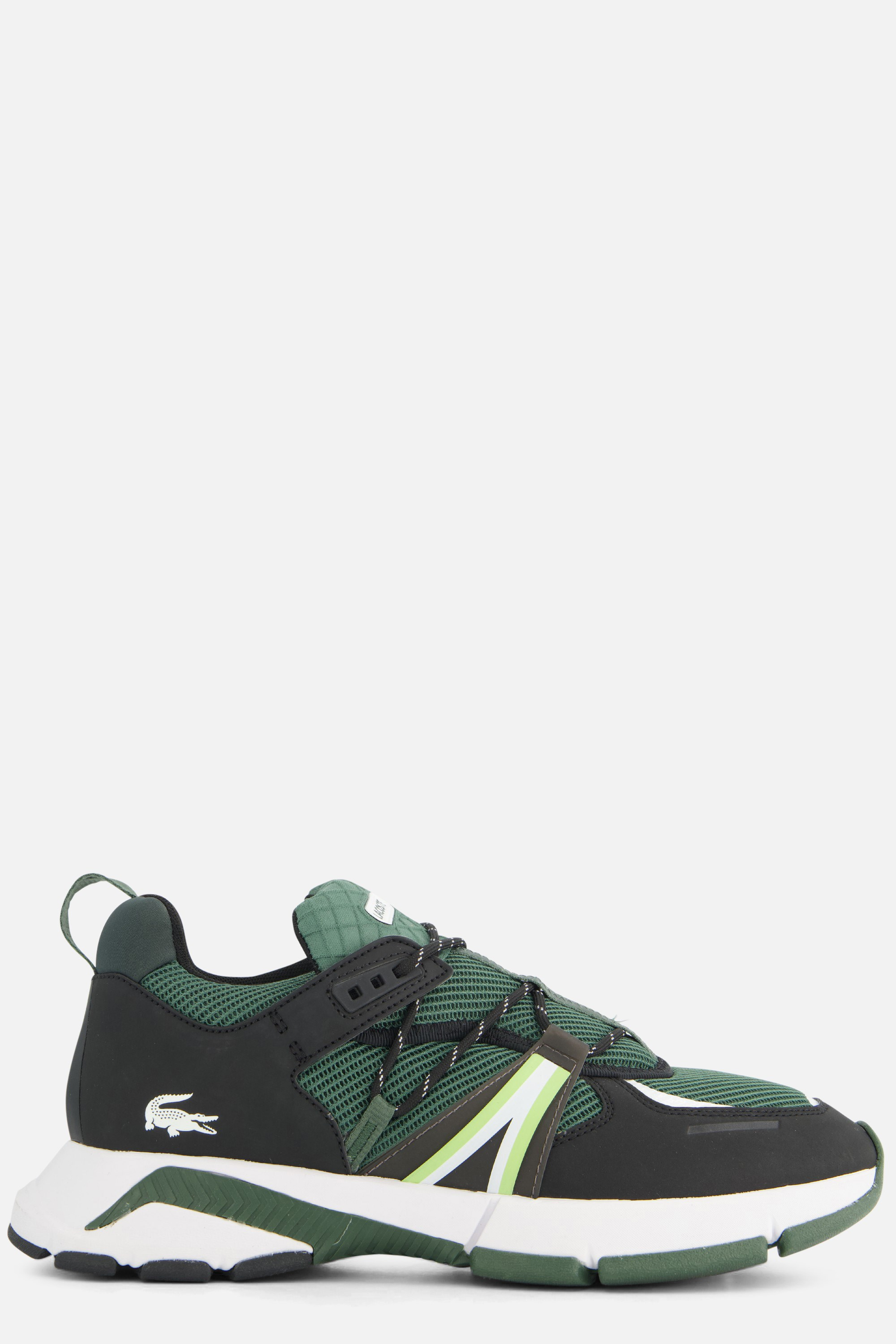 Yeşil renkli bu Lacoste L003 spor ayakkabı suni deriden üretilmiştir. Astar ve rahat iç taban tekstilden yapılmıştır. Taban kauçuktan yapılmıştır ve 2 santimetre kalınlığa sahiptir.