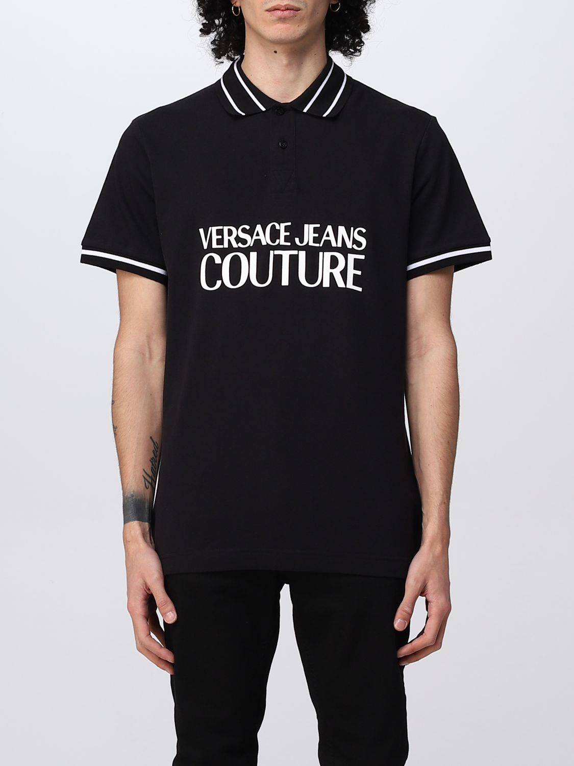 Erkek Versace Jeans Siyah Baskılı Polo - Polo gömlekler Pamuklu piqu © polo.