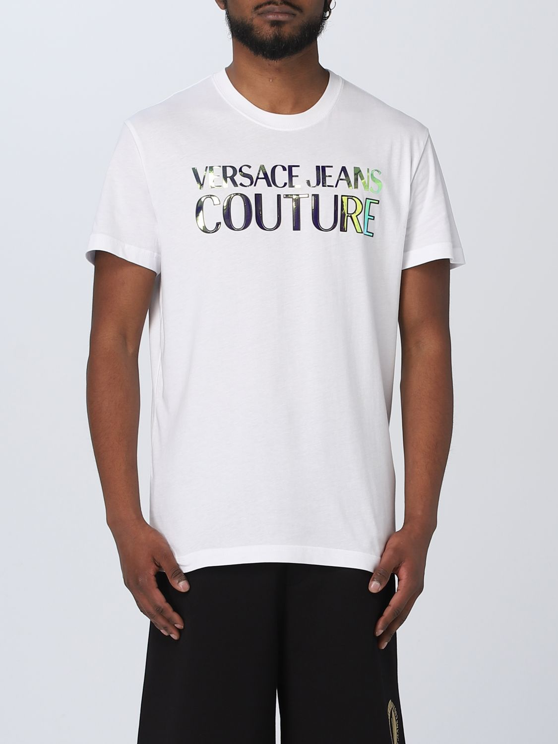 Erkek Versace Jeans Beyaz Baskılı Tişört - Kısa kollu tişörtler Pamuklu jarse tişört.