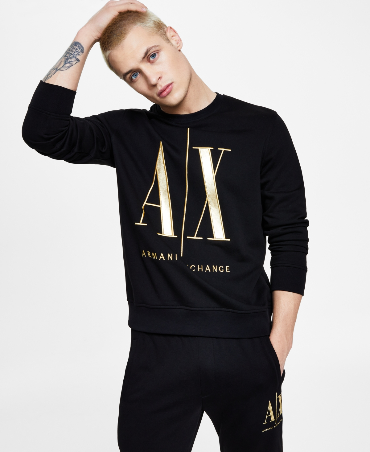 A|X Armani Exchange'in metalik desenli logo baskısıyla zenginleştirilmiş bisiklet yaka sweatshirt'ü ile çıtayı yükseltin.