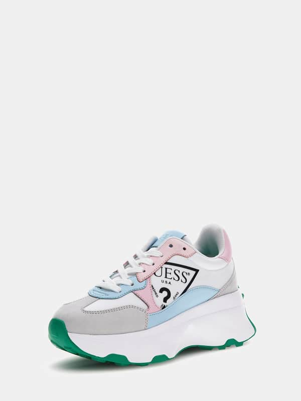 Sentetik koşu ayakkabısı.Yuvarlak burun.Kauçuk taban yüksekliği: 6 cm.Bağcıklı.Yanda üçgen logo baskılı.Üst malzeme: %60 Polyester, %40 Poliüretan.İç taban ve astar tekstil.Kauçuk taban.