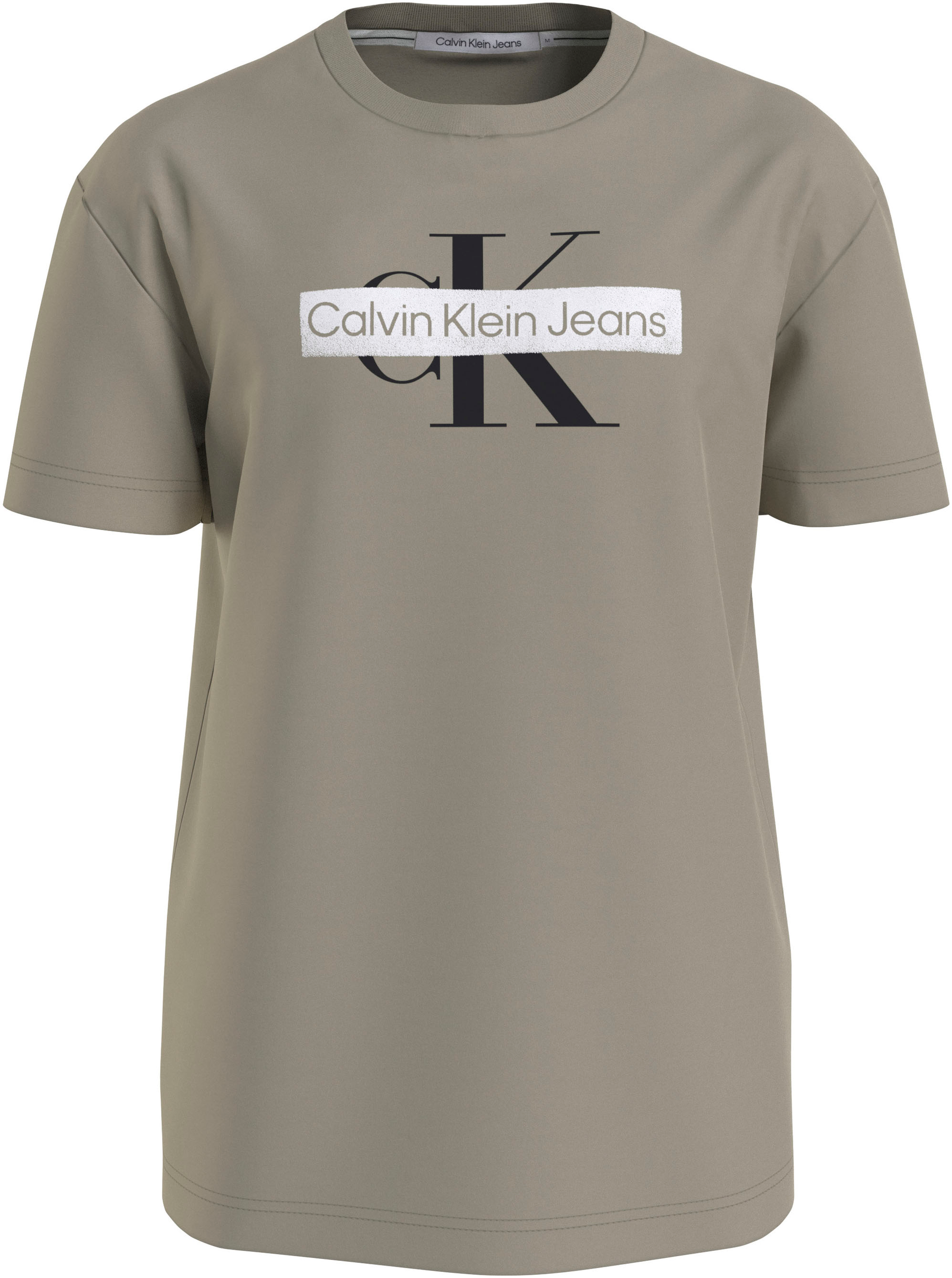 Calvin Klein Jeans Monologo Tişört Plaza Taupe. Nervürlü bisiklet yakalı ve kısa kolludur. İmza niteliğindeki Calvin Klein Jeans logosu göğsün ortasında siyah plaza boz kahverengi ve beyaz renklerde basılmıştır. Üst dikiş detayı plaza boz kahverengi. 100 Pamuk.
