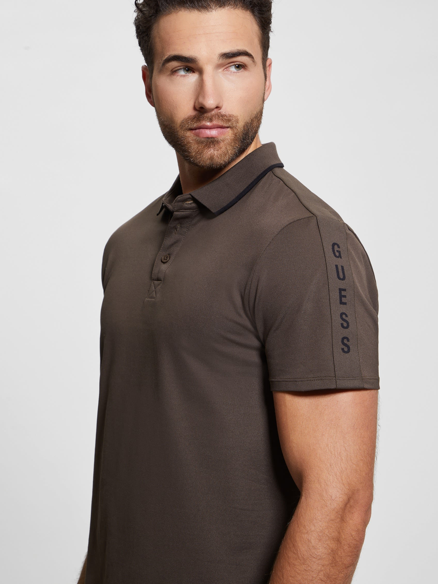 Güncellenmiş bir klasik. Bu Guess pike polo tişört, kontrast uçlu yakası ve logo bantlı kollarıyla temiz ve modern bir tasarımcı ifadesi sunar.
