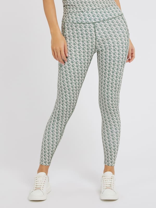 Koşmak veya uzanmak için bu tayt, baştan aşağı G logosu baskısına, yüksek bel kesime ve kauçuk logolu çift cebe sahiptir. Geri dönüştürülmüş plastik içerir.