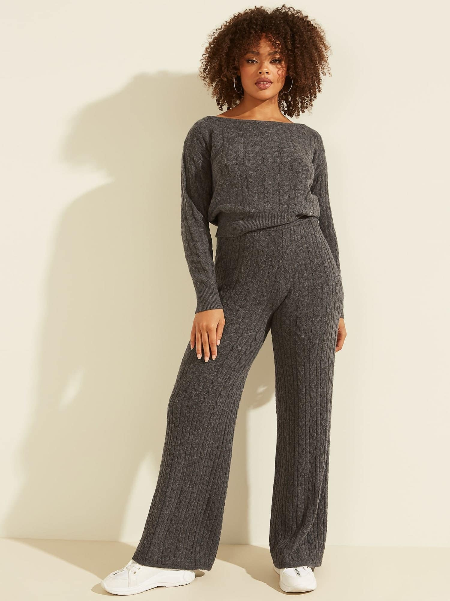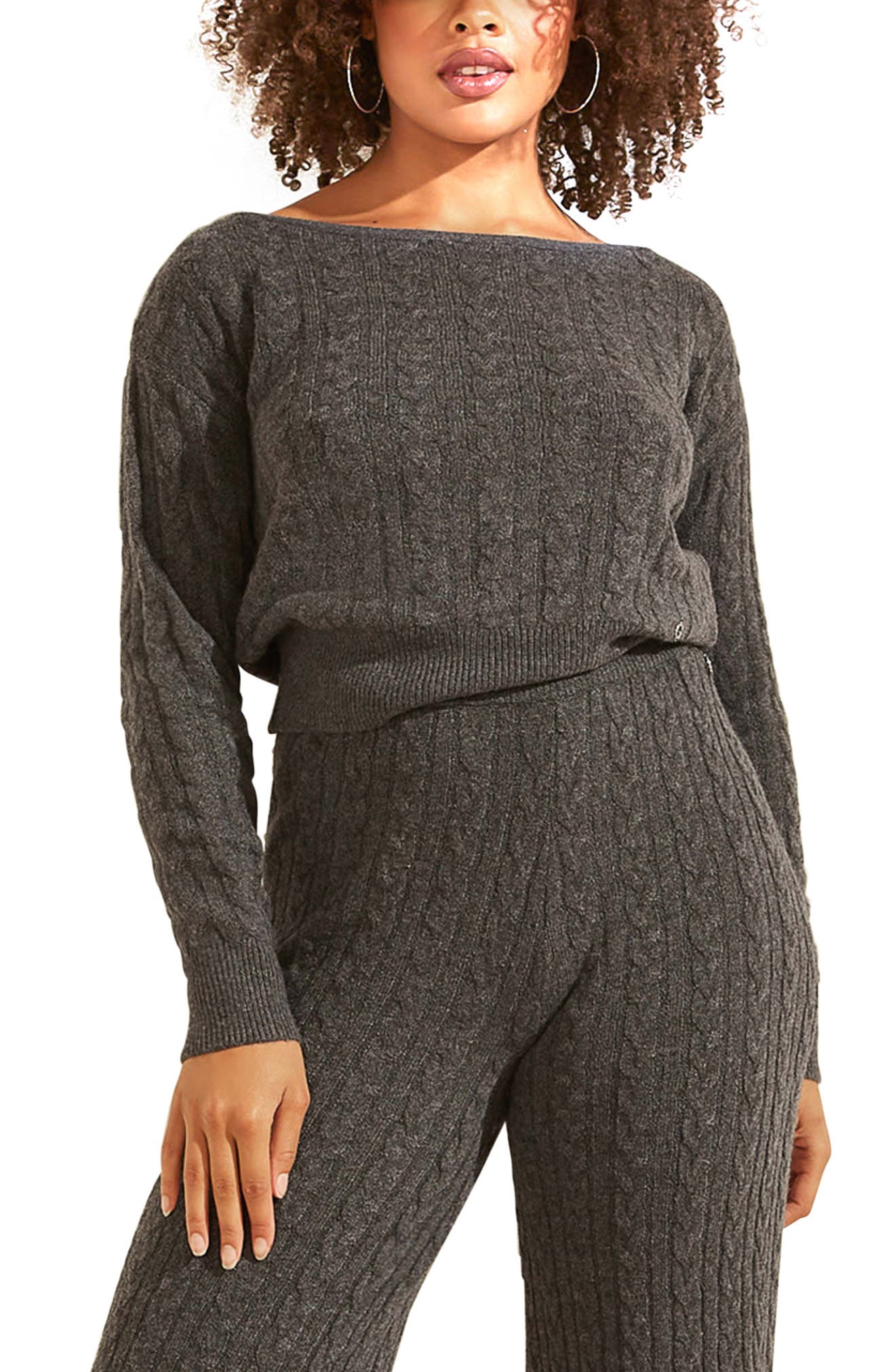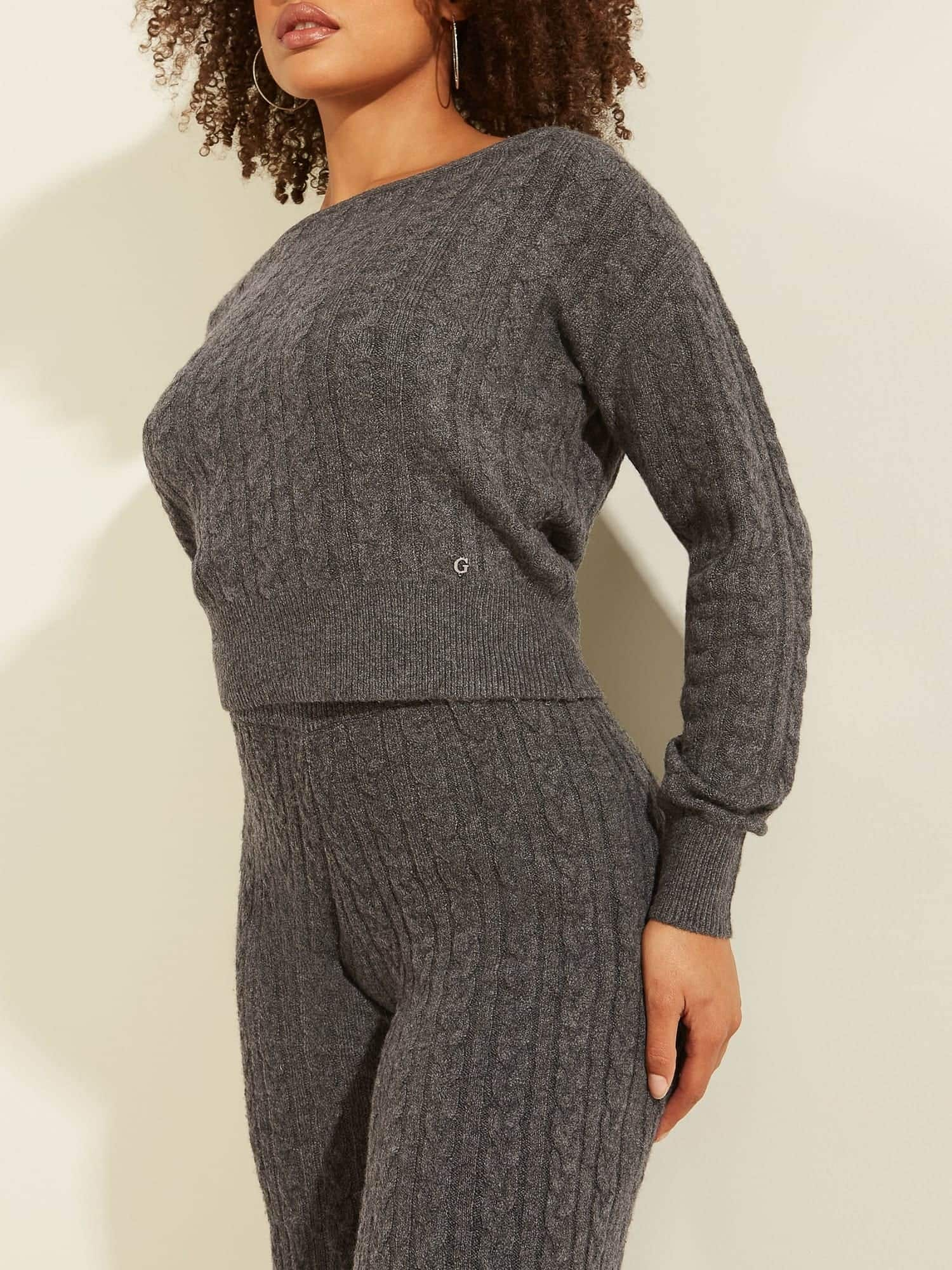 Guess Tanya Kayık Yaka Kablo Örgü Kazak Kadın Kadın Giyim - Kazak.
