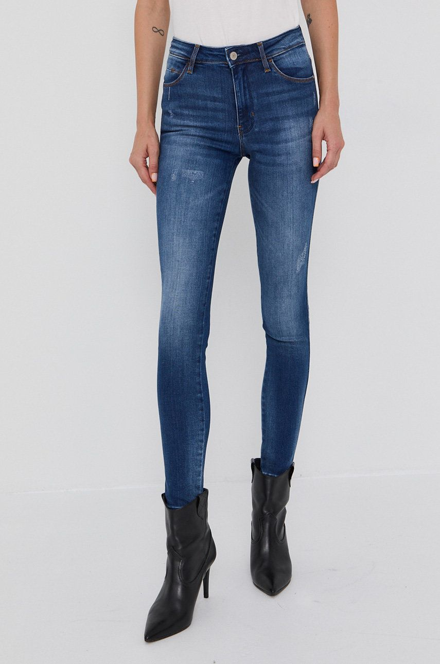 Guess koleksiyonundan klasik bel bandına sahip skinny tarzında günler. Model yıkanmış denimden yapılmıştır.