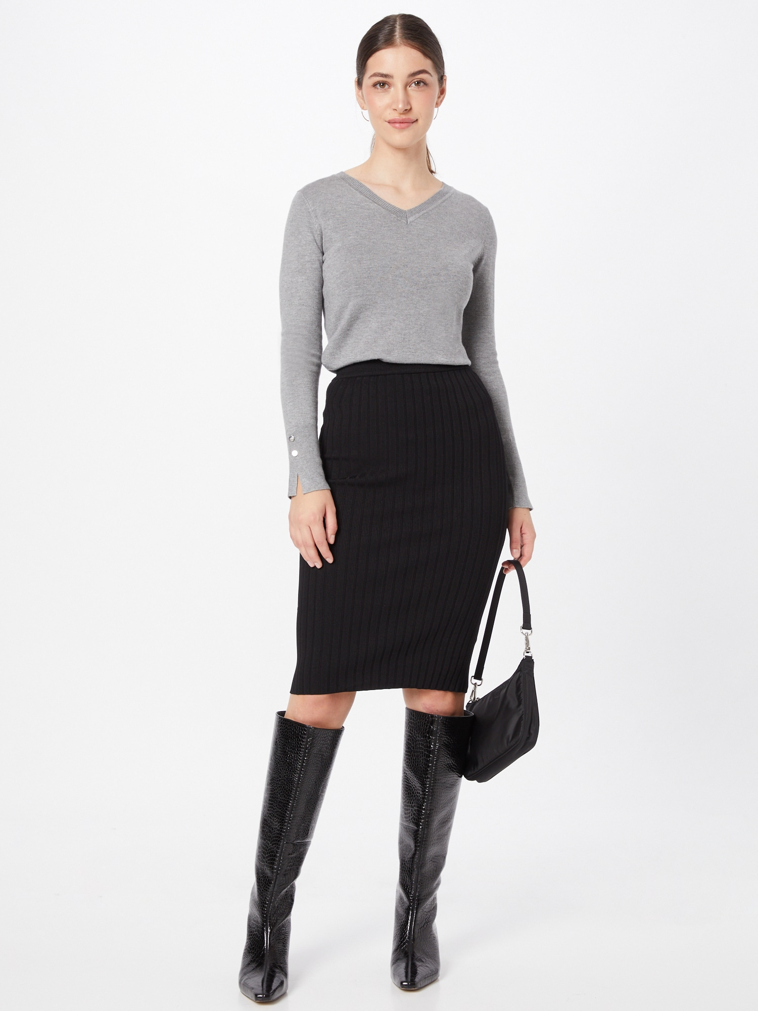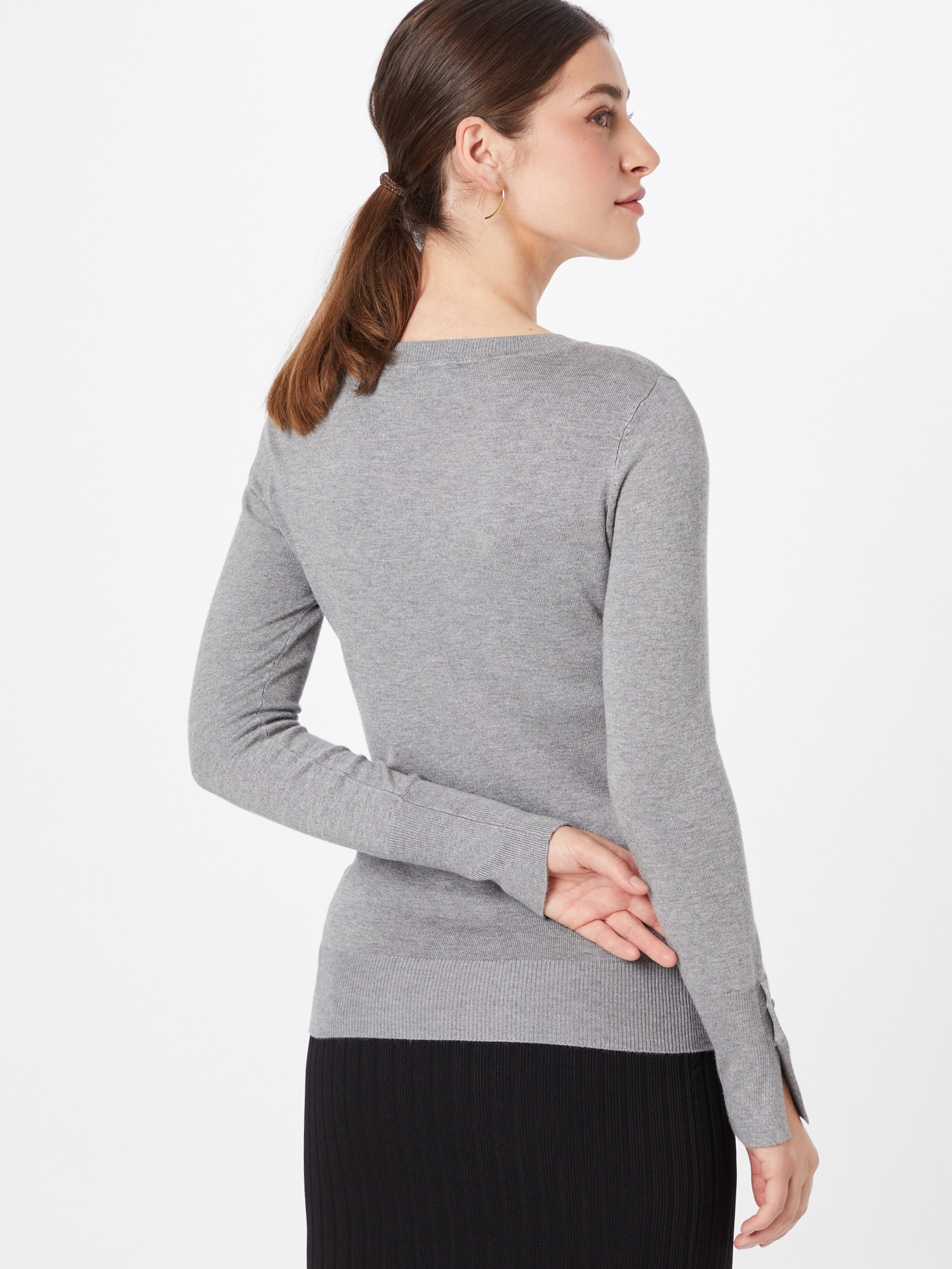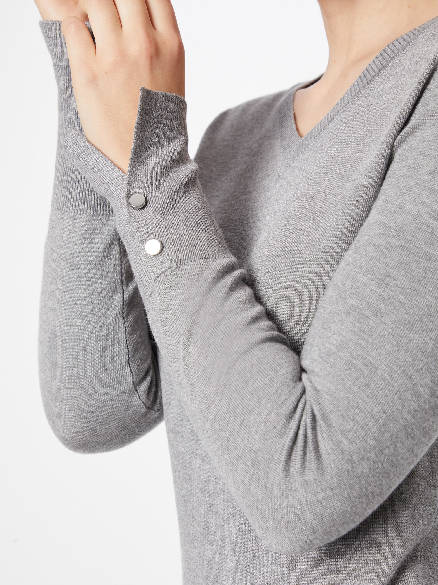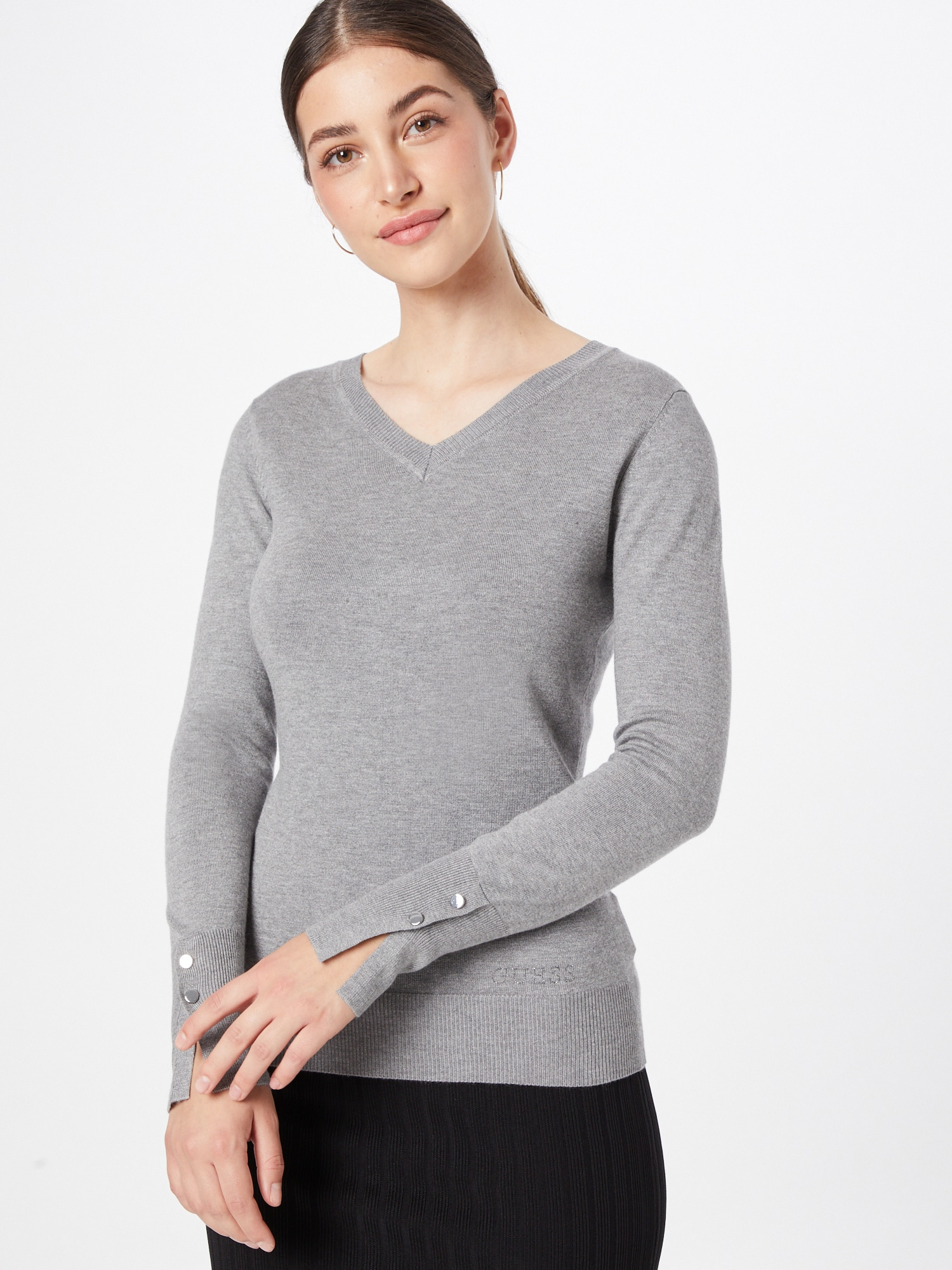 Viskon karışımlı kazak.V yaka.Uzun kollu.Dar kesim.SÜSLEMELER: Manşetlerde düğme detayları.Ön logo.KABAN (ana kumaş): 71 Viskon, %29 Poliamid.YIKAMA ETİKETİ: Soğuk suda elde yıkanır.Resim S bedeni göstermektedir.Bedene tam oturur.