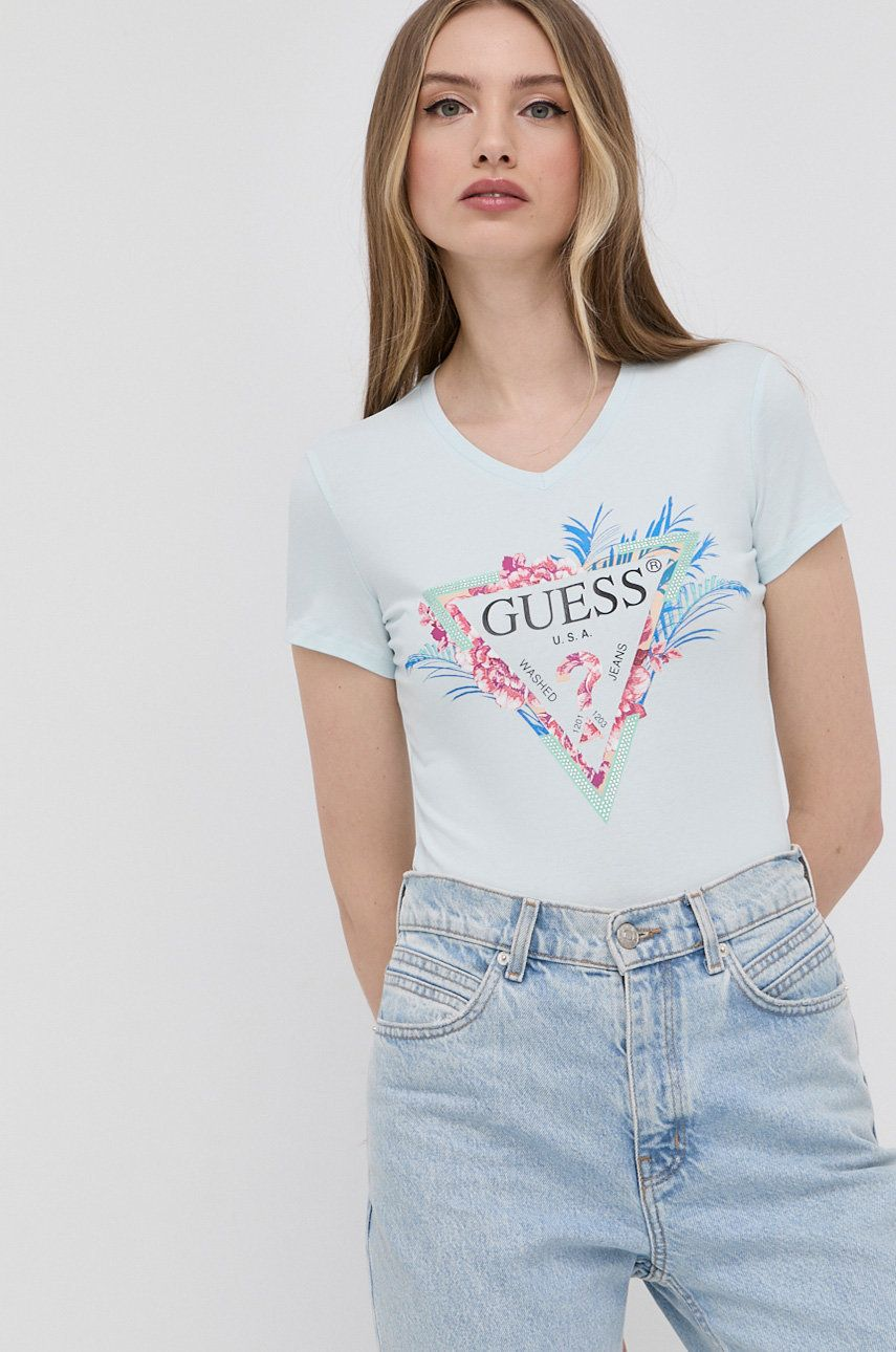 Renk: açık maviStor : baskılıKesim : dar kesimKesim : yuvarlakEl : kısaBağlama : bağlama yokMalzeme : %95 pamuk, %5 elastan.