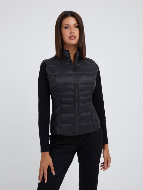 Sentetik kumaş puffer yelek.Yüksek yaka.Kolsuz.Dar kesim.Fermuarlı.KUMAŞ DETAYLARI: Su itici.Baskılı astar.Yan cepler.Resim S bedenini göstermektedir.Toplam uzunluk: 24.02 inç. / 61 cm.bedene tam oturur.