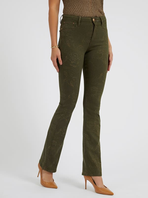 Pamuk karışımlı pantolon.Klasik 5 cepli.Yüksek belli, İspanyol paça.Dar kesim.Önden düğmeli ve fermuarlı.KUMAŞ TİPİ: Damask dimi.27 beden gösterilmektedir.32 inch. / 81,3 cm.Bedene tam oturur.