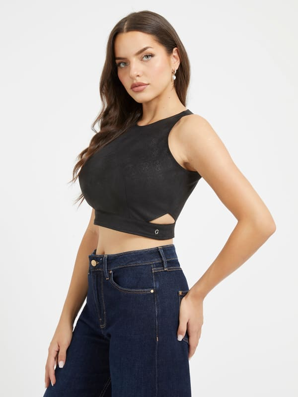 Suni süet üst.Bisiklet yaka.Kolsuz.Dar kesim.Arkadan fermuarlı.KUMAŞ TİPİ: Suni süet KUMAŞ DETAYLARI: Kabartmalı 4G logolu.SÜSLEMELER: Yan kesimler.Resim S bedeni göstermektedir.Toplam uzunluk: 37 cm / 14.57 inç.Bedene göre.