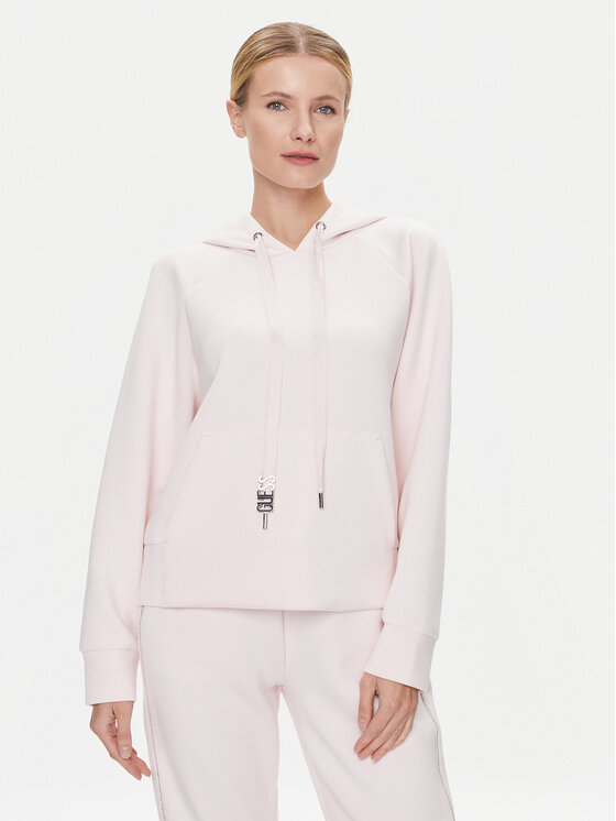 Guess'in kapüşonlu sweatshirt'ü reglan kolları ve büzme iplerindeki metal logo donanımıyla yeni bir görünüm kazanıyor.