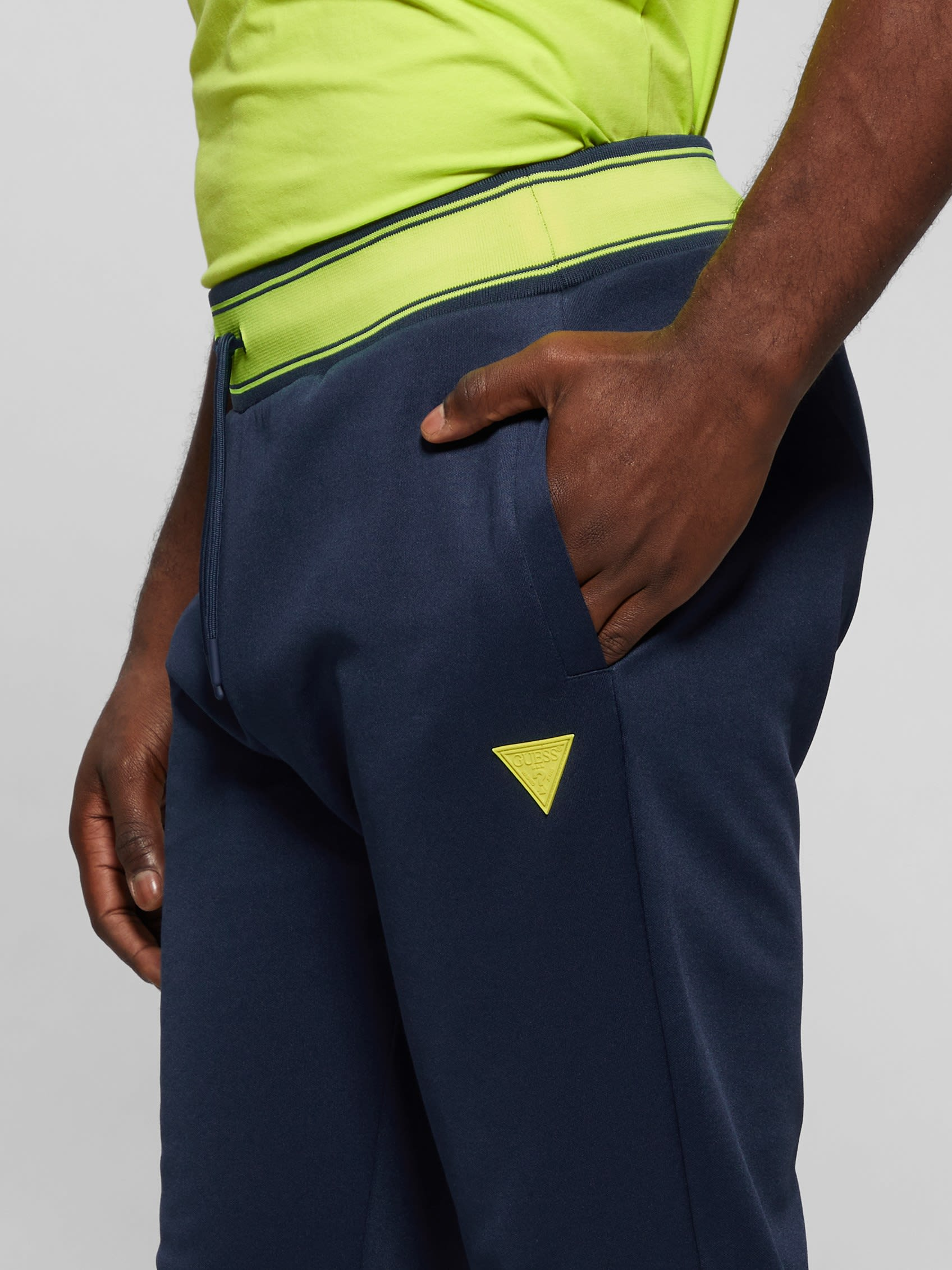 Aktif pantolon İpli bel bandı Yan dikiş cepleri ve arka cep Çizgili süs Çekme Orta boy, kalçaya oturur 9,5" Bacak açıklığı. 40,75" yan dikiş. Ölçüler orta bedenden alınmıştır. Fırçalanmış örgü %43 Pamuk, %40 Geri Dönüştürülmüş Polyester, %17 Polyester. Geri dönüştürülmüş plastik içerir.